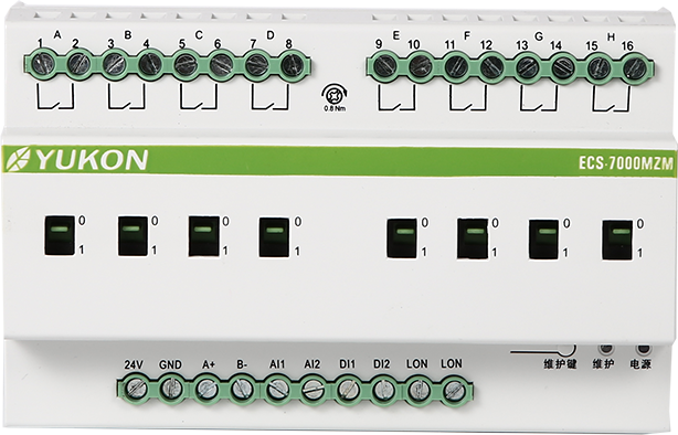 具有1路RS485/MODBUS通訊接口,用于掃描開關面板的的開關動作,并回寫開關面板按鍵指示燈的狀態(指示該按鍵對應的照明回路狀態)。